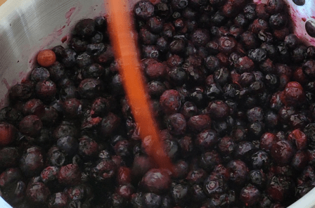 - Mix it for 6~7 minutes, and be careful that the blueberries don’t stick to the bottom of the pot